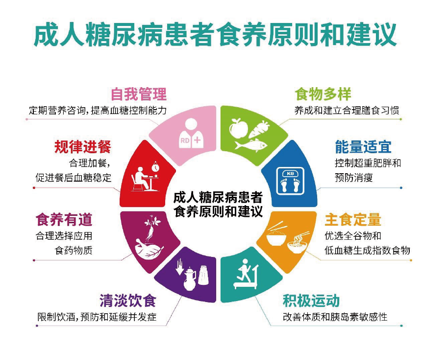 膳食管理和治療是糖尿病患者血糖控制的核心,應遵循平衡膳食的原則,以食物多樣性實現合理膳食均衡營養的基礎,調整優化食物種類和重量,滿足自身健康需要。