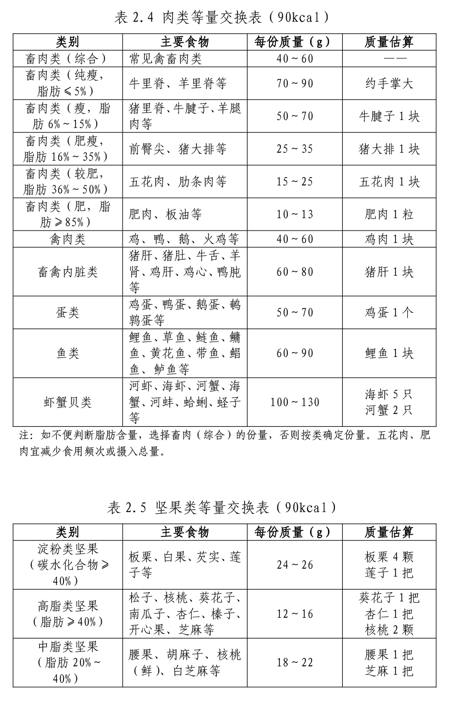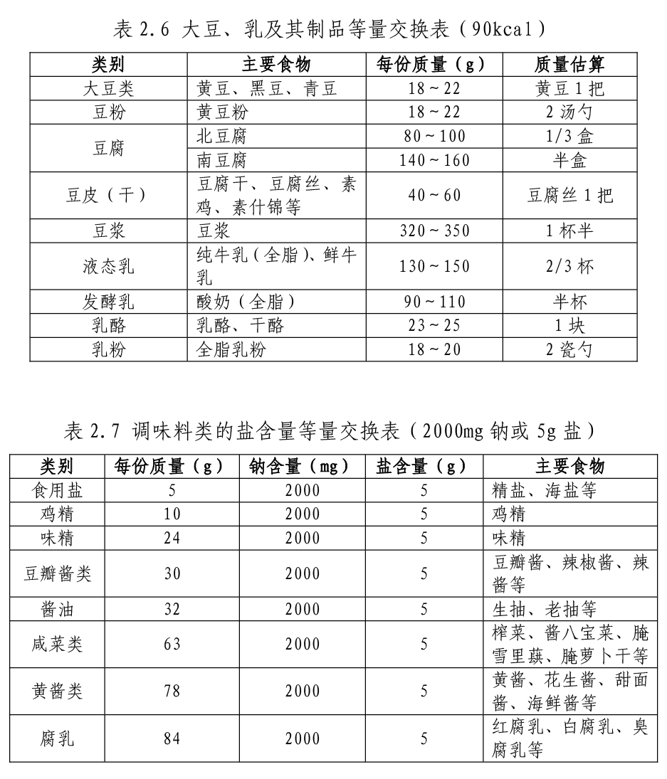 附:食物等量交換表:谷薯類、蔬菜類、水果類、肉類、堅果類、大豆類、乳及其制品類、調味料類的鹽含量
