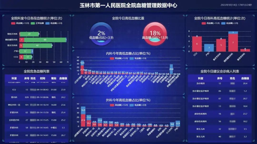 l 全院血糖管理中心大屏實時展示患者血糖數據