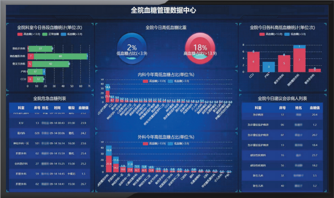 通過全院血糖管理一體化的頂層設計,打通科室間的數據孤島壁壘,建立以內分泌科為主導的多學科協作模式;通過血糖數據中心大屏展示,對每日各科室病患血糖情況一目了然,可實時監測管理高低血糖患者,對于危急值進行預警,及時會診,為患者制定個體化方案、血糖控制目標及隨訪計劃;使每位患者的血糖水平得到有效控制,以減少因糖代紊亂所致的相關疾病死亡率、感染等,縮短術前等待時間、住院時間。節省有限的醫療資源,提高和延展醫生服務患者的品質與效率,提升患者診療體驗及滿意度,實現遠程對糖尿病患者的持續照護和教育指導,使廣大患者獲益。