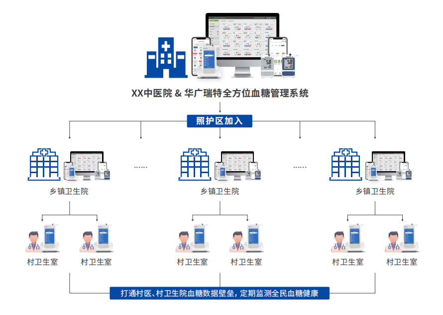 隨著血糖智能管理鏈條的不斷完善,系統(tǒng)不僅能夠在多個應(yīng)用場景下為糖尿病患者提供定制化服務(wù),還能全面、精準地收集醫(yī)療數(shù)據(jù),構(gòu)建出每位患者的電子健康檔案,為臨床決策提供堅實的數(shù)據(jù)基礎(chǔ)。同時,系統(tǒng)還實現(xiàn)了跨層級醫(yī)療體系之間的無縫對接,通過動態(tài)監(jiān)管與持續(xù)的健康干預(yù)措施,為省、市、縣乃至鄉(xiāng)鎮(zhèn)各級醫(yī)療機構(gòu)提供了科學(xué)的管理決策依據(jù)。這種全方位的健康管理“生態(tài)模式”的構(gòu)建,不僅增強了醫(yī)療服務(wù)的連續(xù)性和協(xié)同性,也為區(qū)域內(nèi)居民的健康福祉筑起了堅實的屏障。