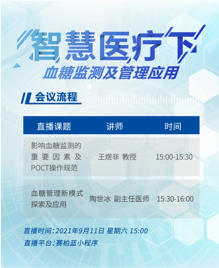 2021年9月11日下午15點,請鎖定“賽柏藍·百通”小程序,一同加入“智慧醫療下的血糖監測及管理應用”主題直播會議!