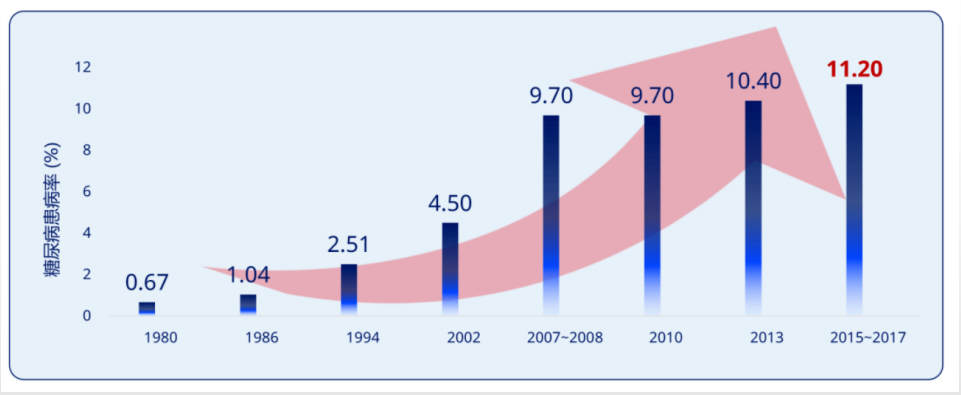 根據(jù)最新的流調(diào)數(shù)據(jù),依WHO診斷標(biāo)準(zhǔn),我國2型糖尿病患病率已經(jīng)上升至11.2%,整體糖尿病人群的血糖控制達(dá)標(biāo)率尚不足50%,全國約有適宜開展分級診療基層首診的2型糖尿病患者超1億人。