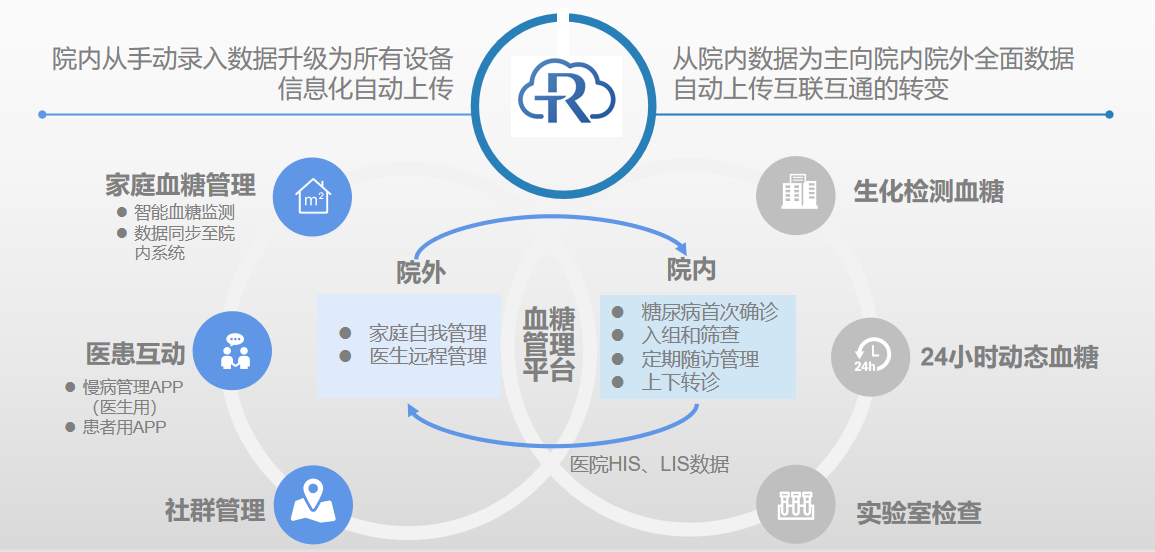 華廣瑞特全院血糖智能管理系統(tǒng)包括:瑞特院內(nèi)血糖管理系統(tǒng)、瑞特院外家庭血糖管理系統(tǒng)、社區(qū)血糖管理系統(tǒng)、智能終端檢測設(shè)備(GM700Pro和GM700SB)以及醫(yī)生用瑞特慢病管理APP,患者用瑞特健康A(chǔ)PP等,可連通糖尿病院內(nèi)、院外信息,對患者的院內(nèi)外一體化全病程管理。